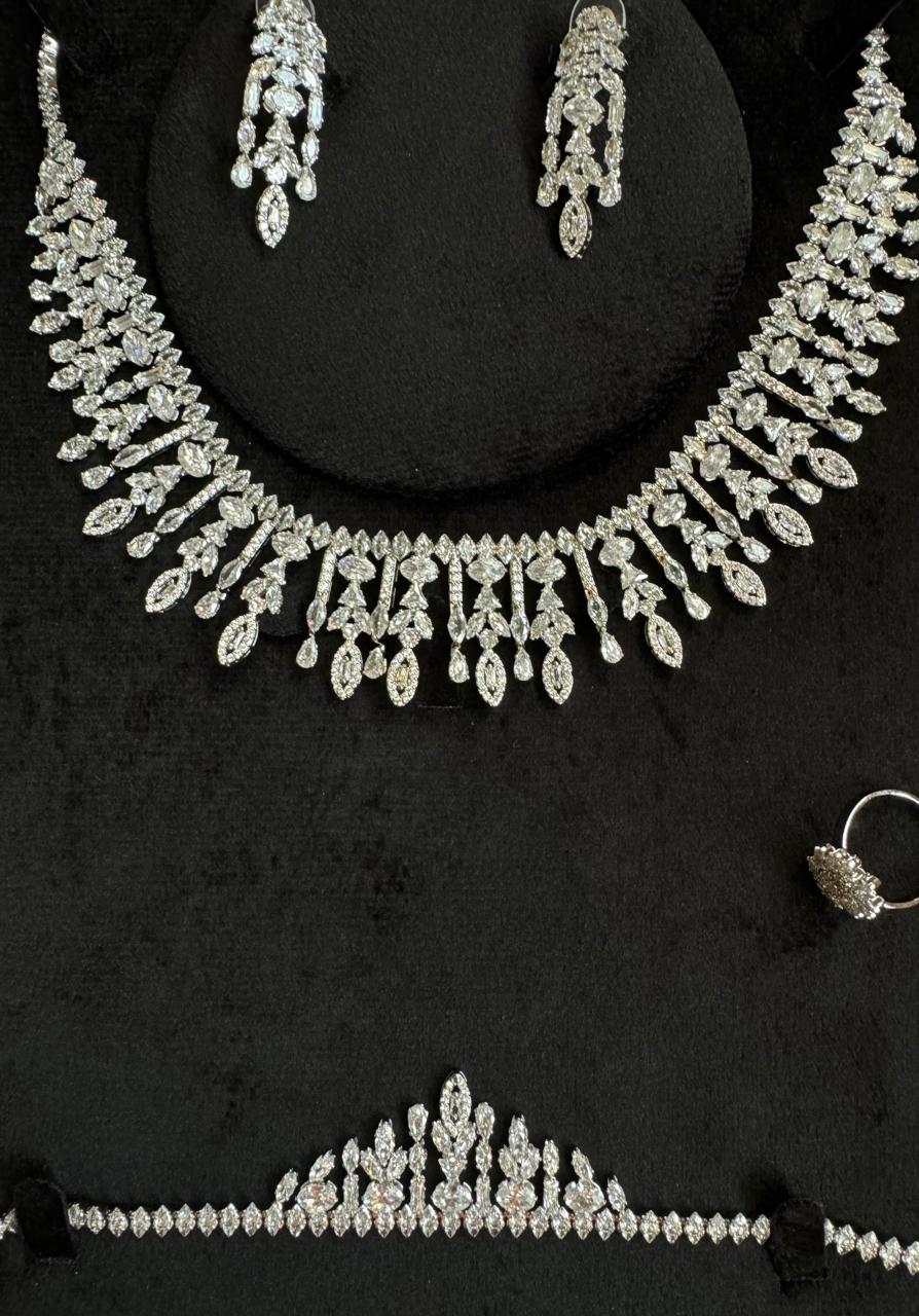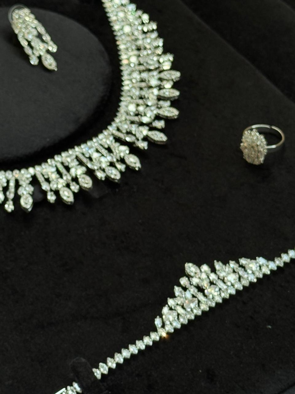 طقم 103 زركون لون فضي 4 قطع مع علبة فخمة