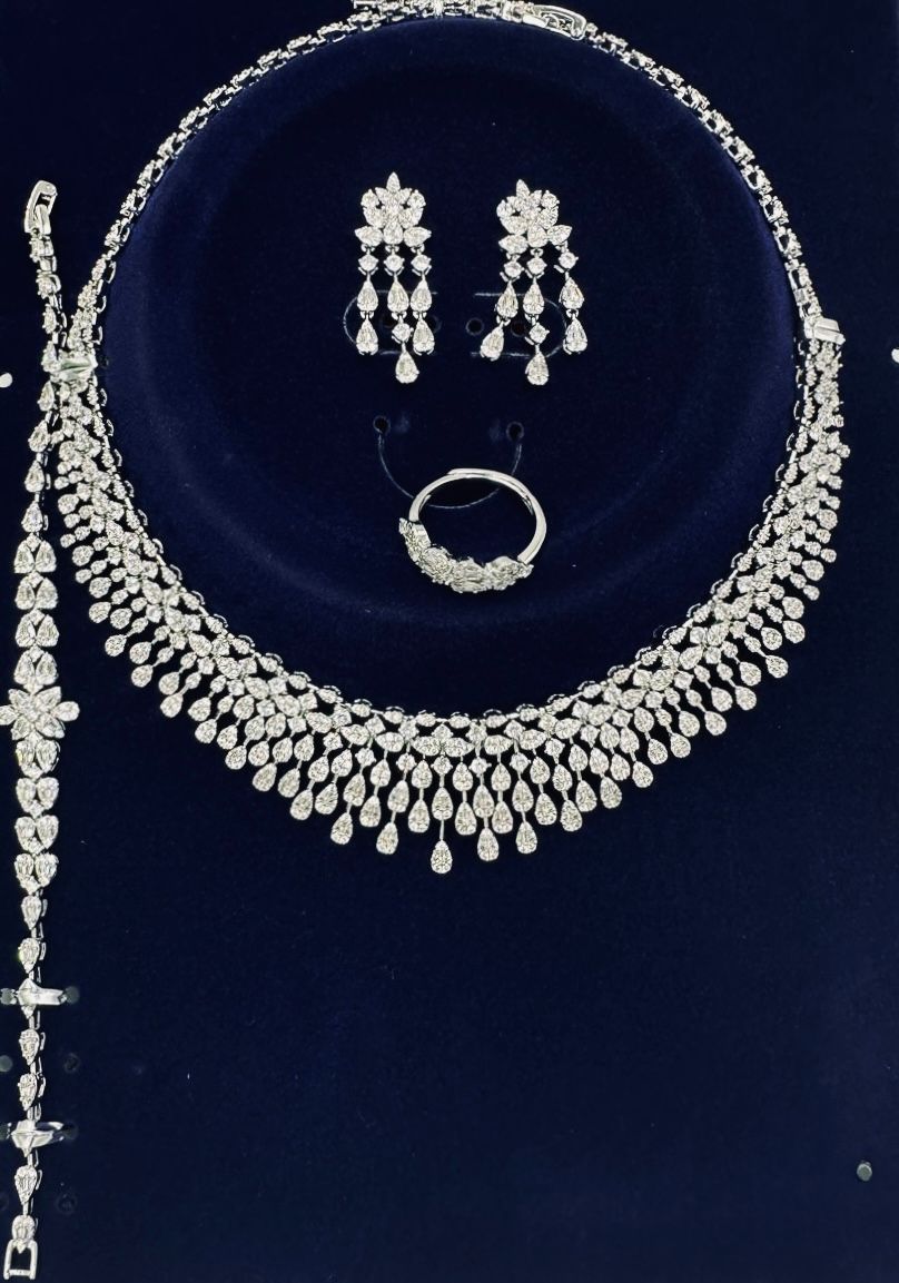 طقم 114 زركون لون فضي 4 قطع مع علبة فخمة السعر الأصلي هو: 600 د.إ.السعر الحالي هو: 400 د.إ.